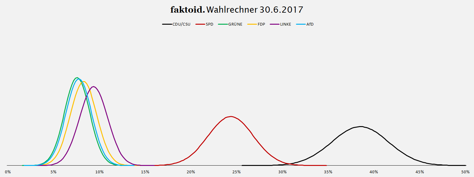 Anhand des faktoid. Wahlrechners verfolgen wir die Entwicklung der aktuellen Umfragen bis zur Bundestagswahl 2017.
